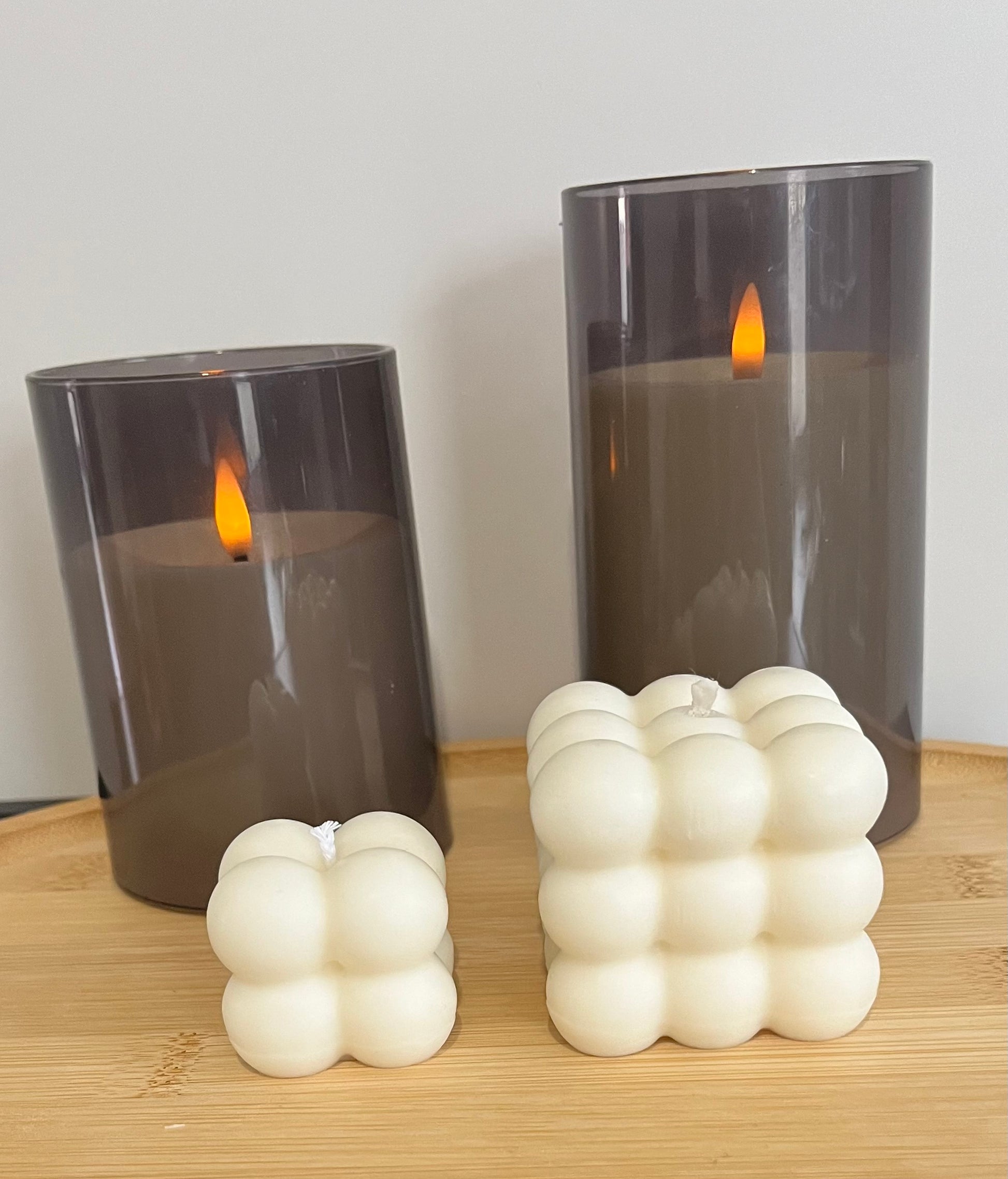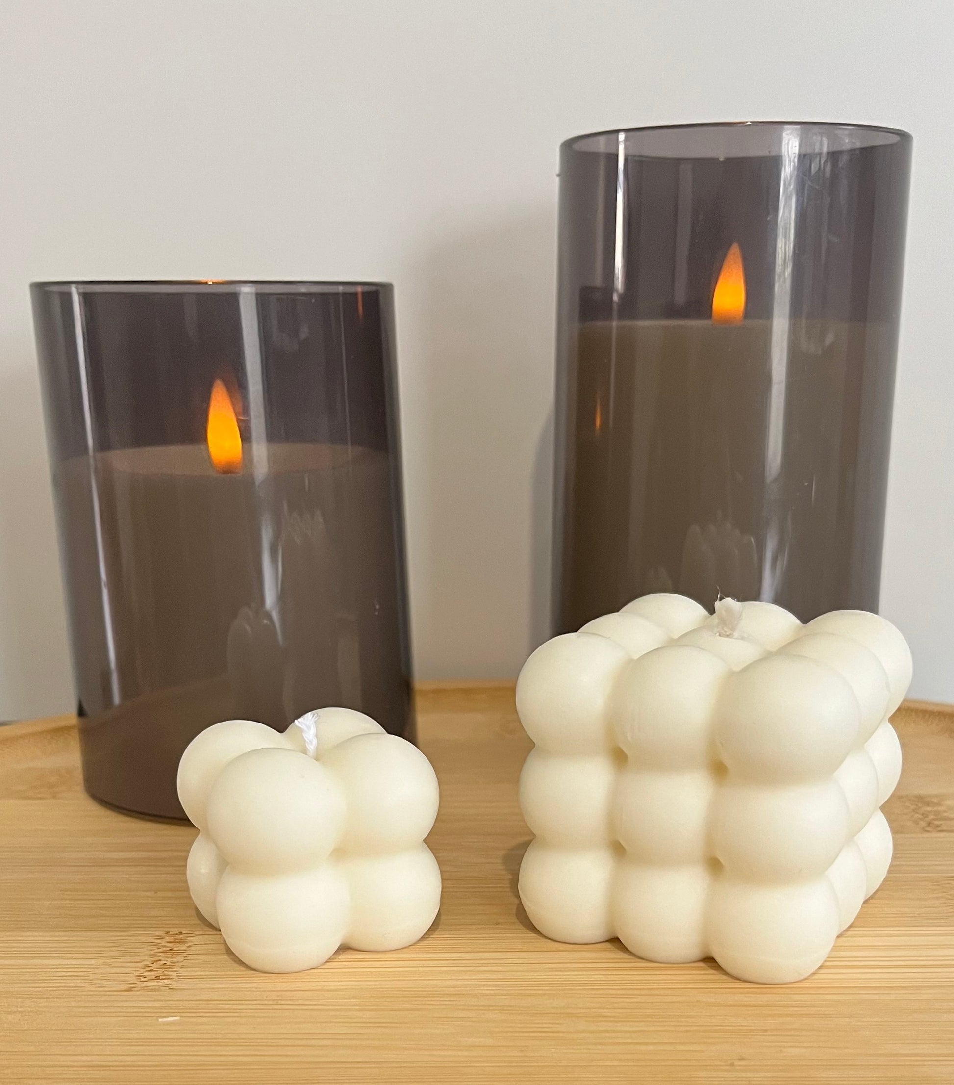 Bringen Sie modernen Check in ihr zu Hause oder verschenken Sie ein stilvolles Accessoire mit diesen Bubble-Kerzen, perfekt für jeden Anlass.