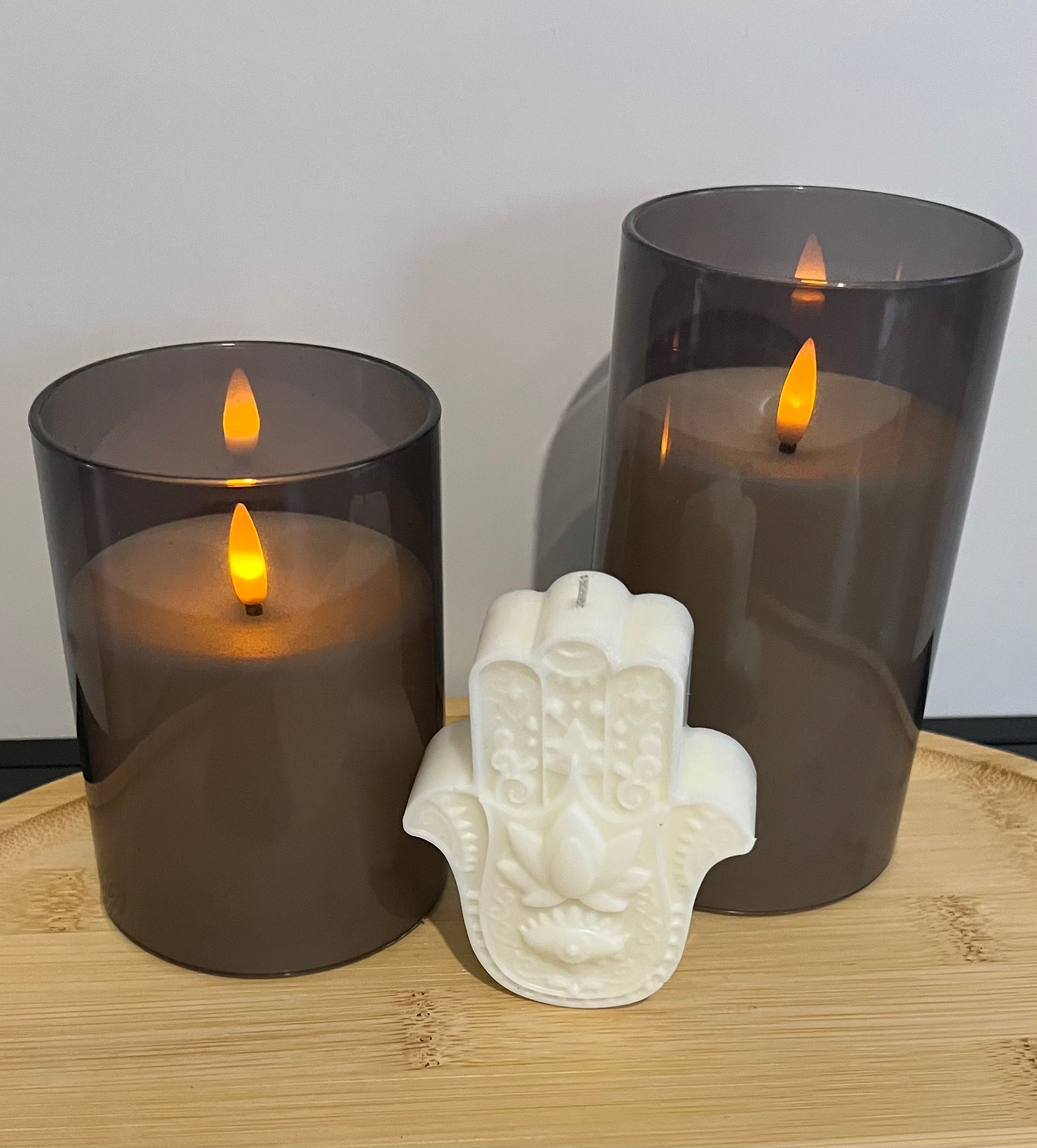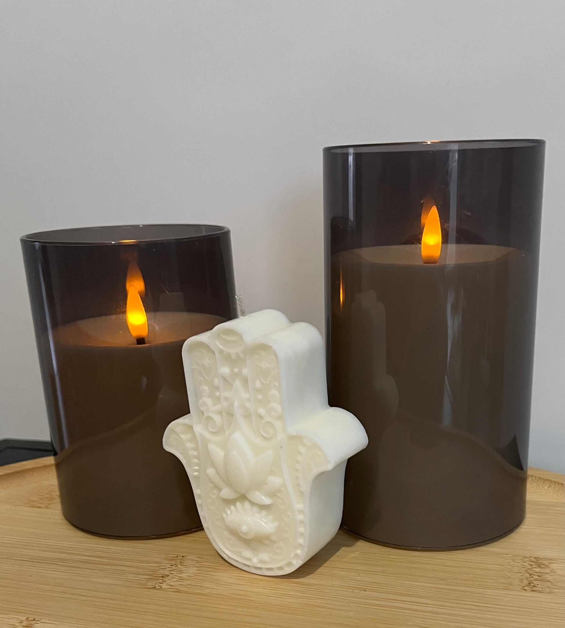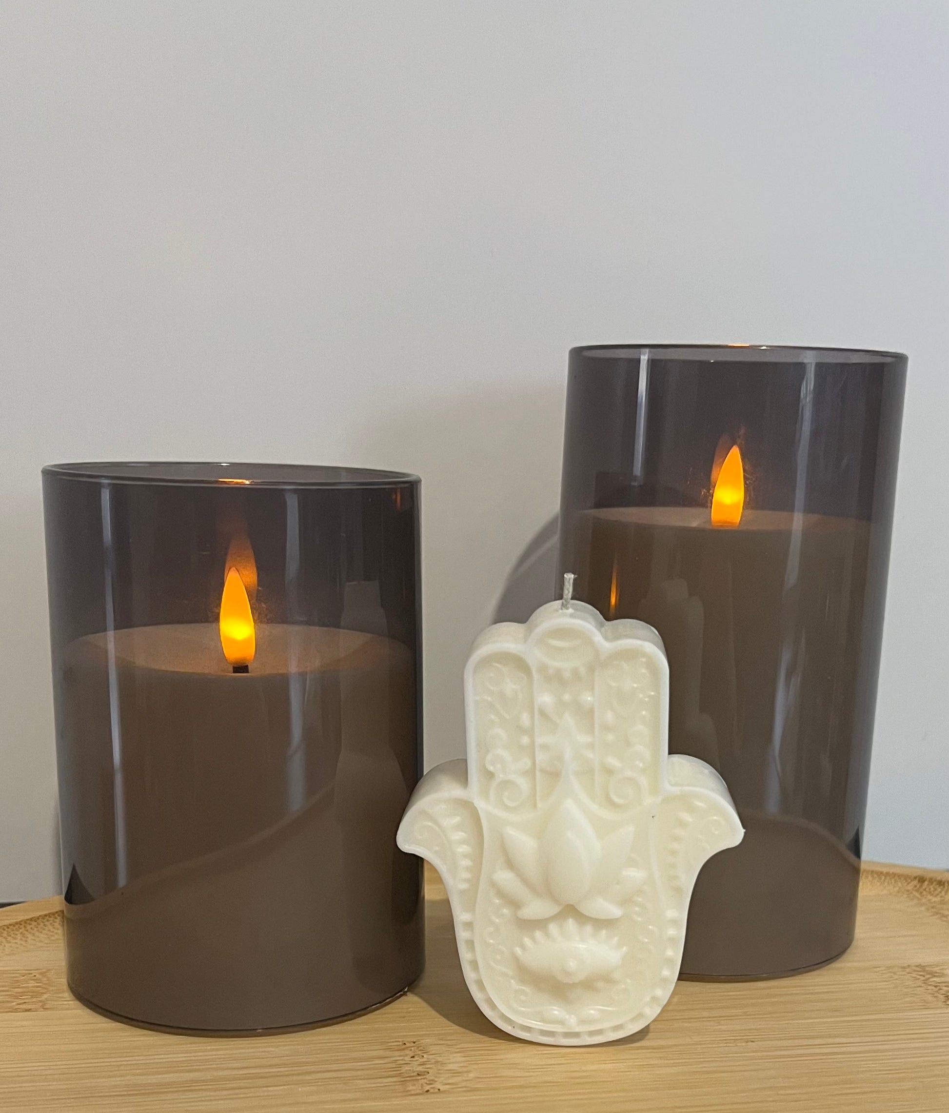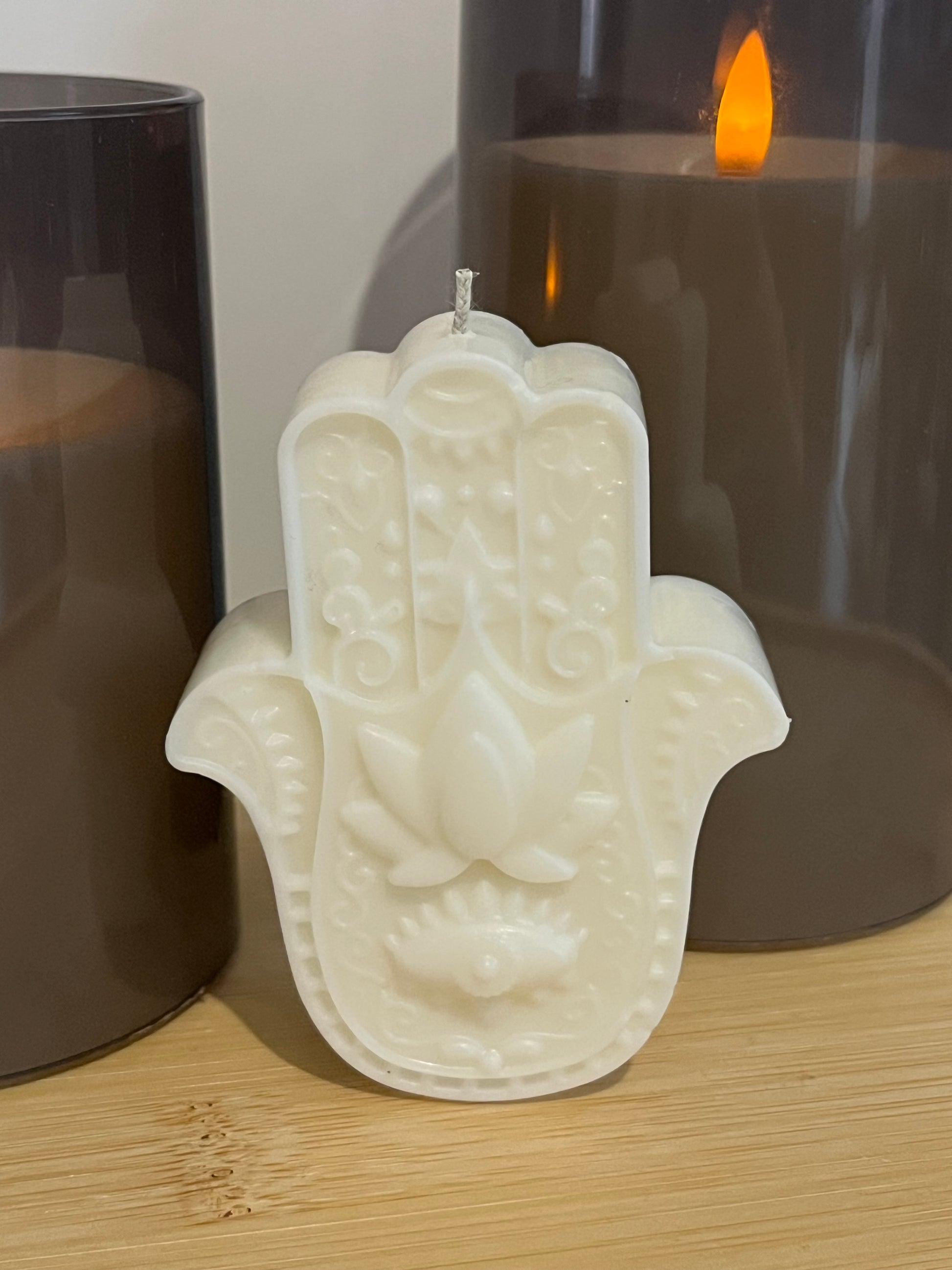 Verleihen Sie Ihrem Zuhause eine spirituelle Note mit der Hamza-Standkerze. Die Kerze ist kunstvoll in Form der Schützen und Hamza Hand gestaltet, die als Symbol für Glück 🍀 , Gesundheit und Schutz steht.