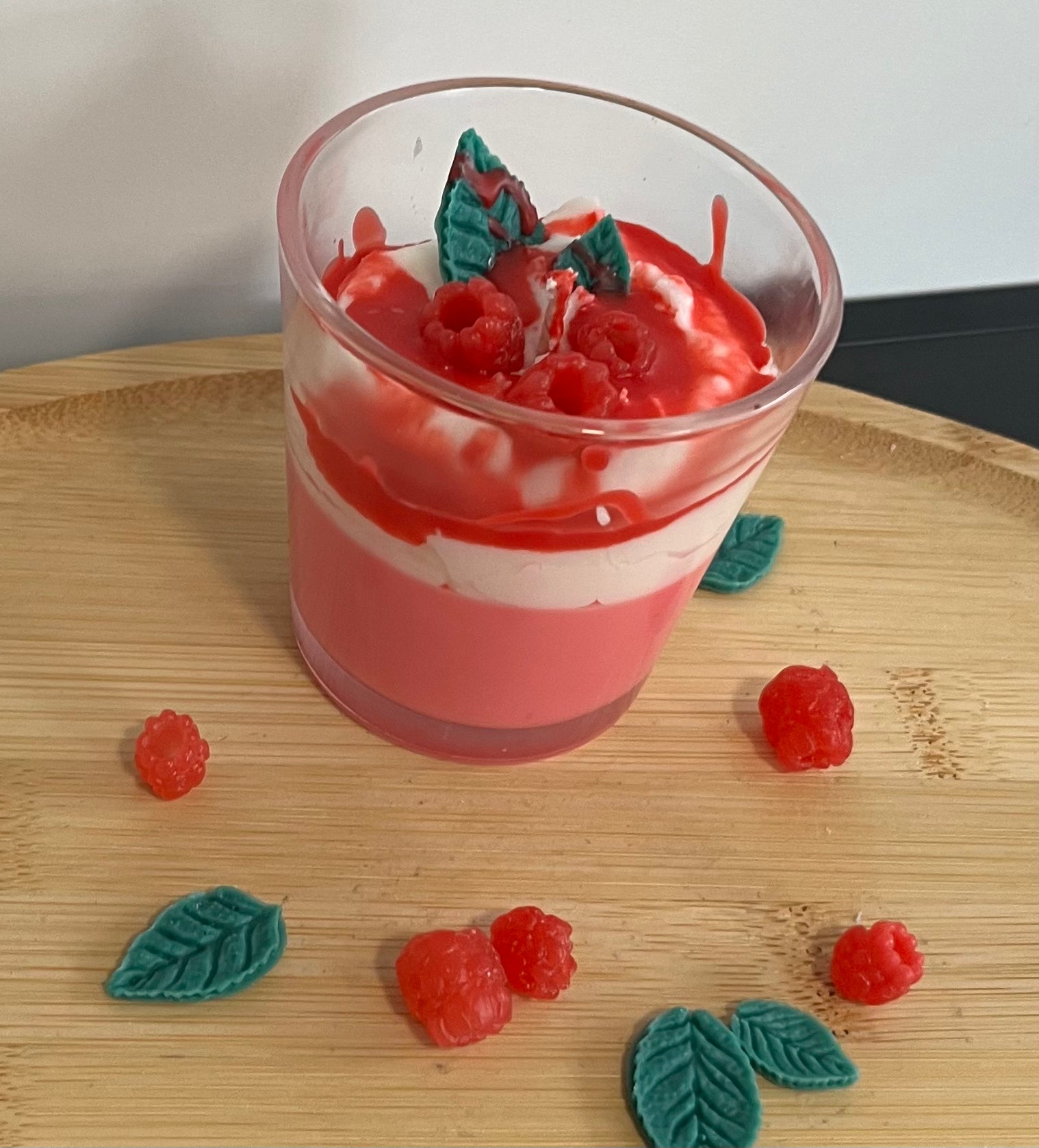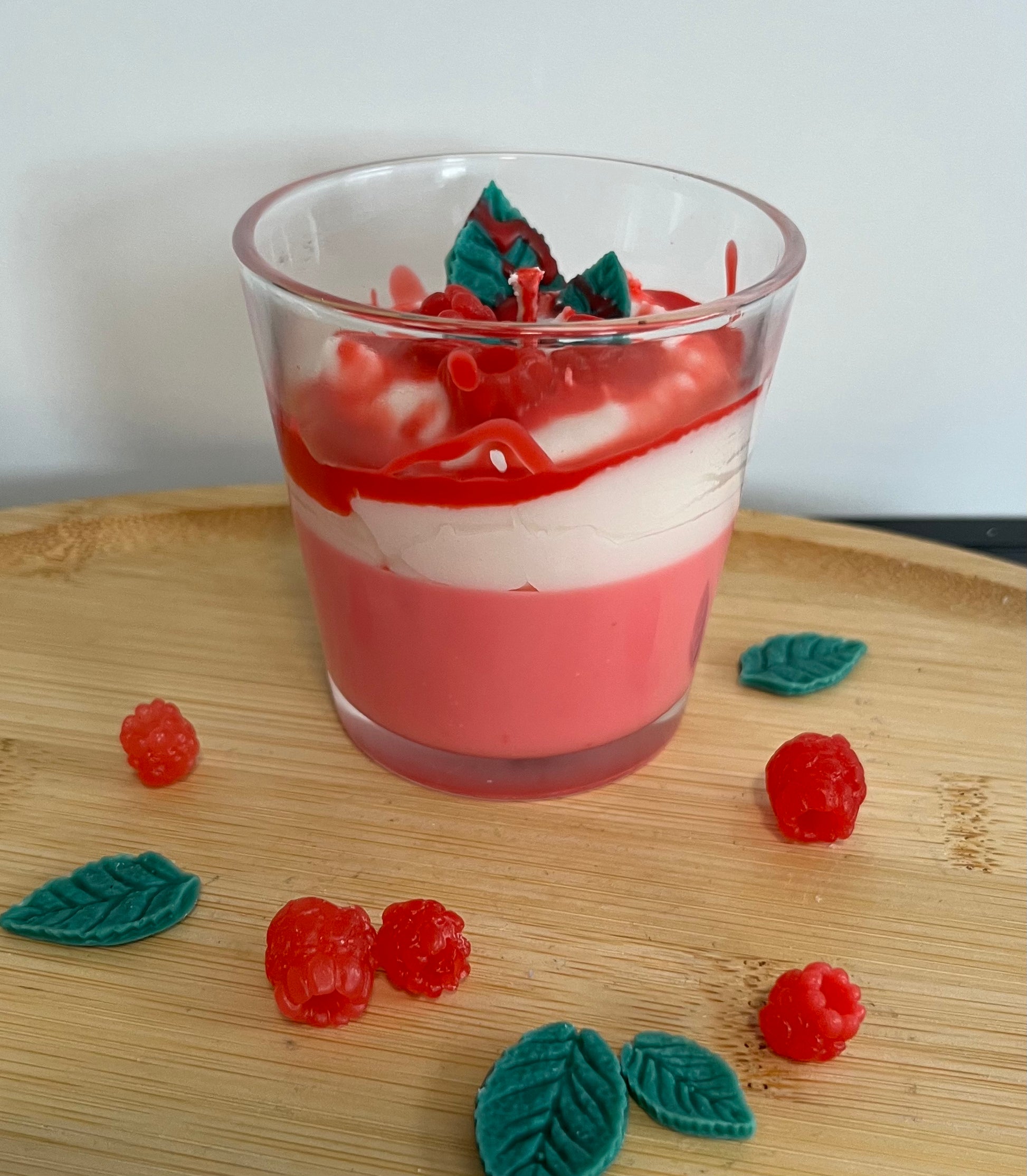Fruchtig, süß und einfach unwiderstehlich! Die handgefertigte Duftkerze „Raspberry Delight“ besticht mit ihrem liebevollen Dessert-Design und dem verführerischen Duft von frischen Himbeeren. Die cremig-weißen und leuchtend roten Wachsschichten erinnern an ein köstliches Himbeer-Dessert und machen diese Kerze zu einem Highlight in jeder Umgebung. 🧁