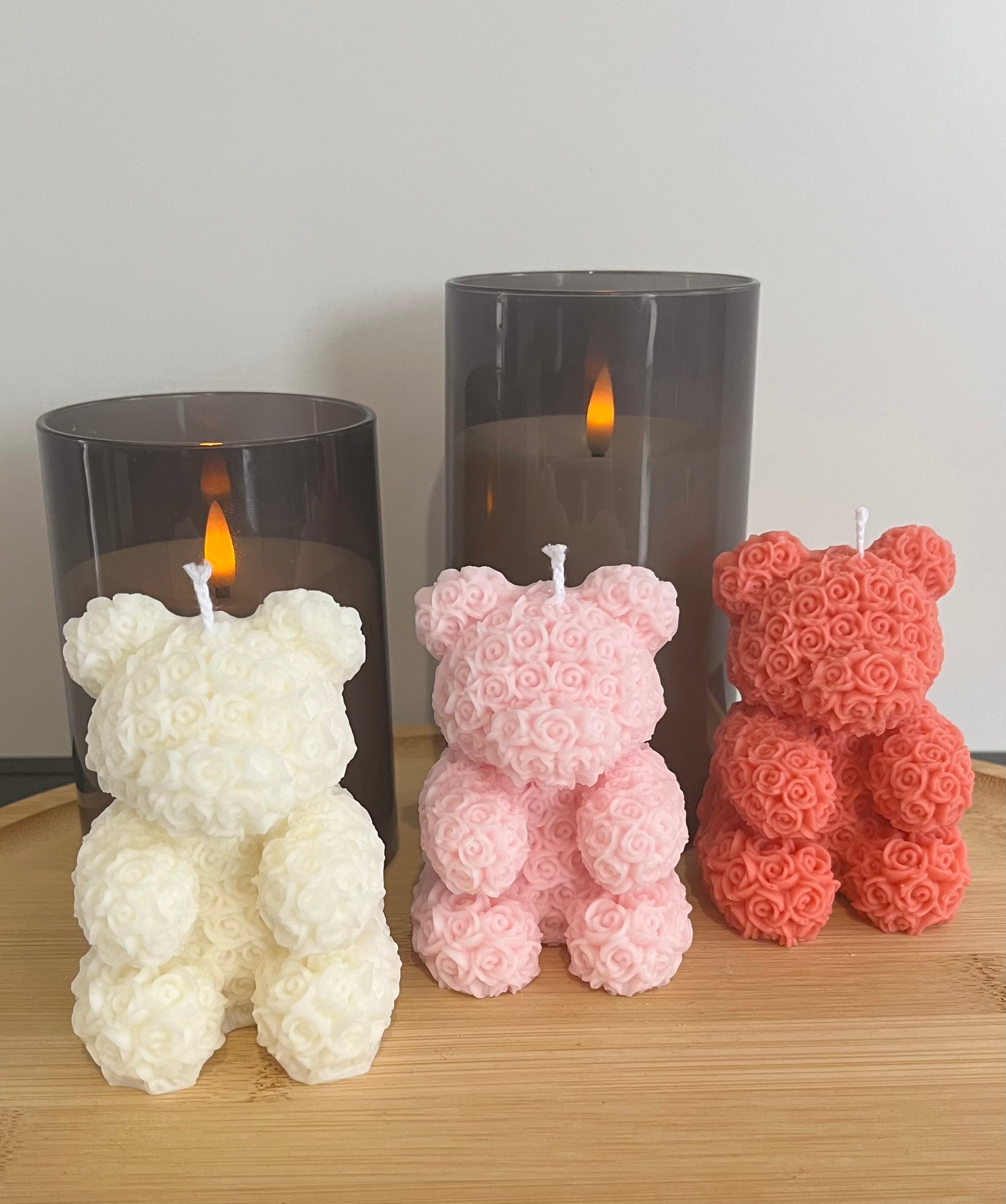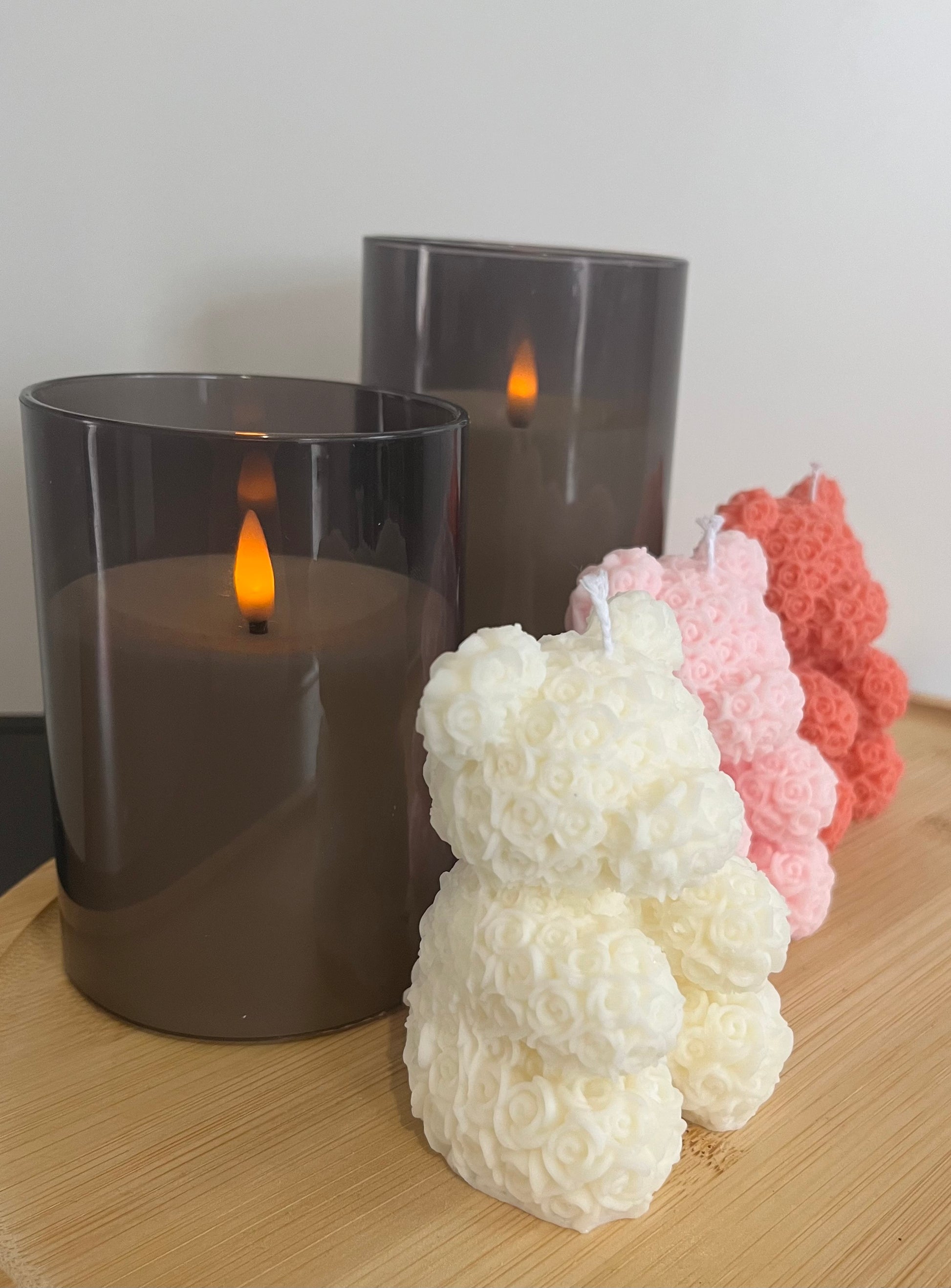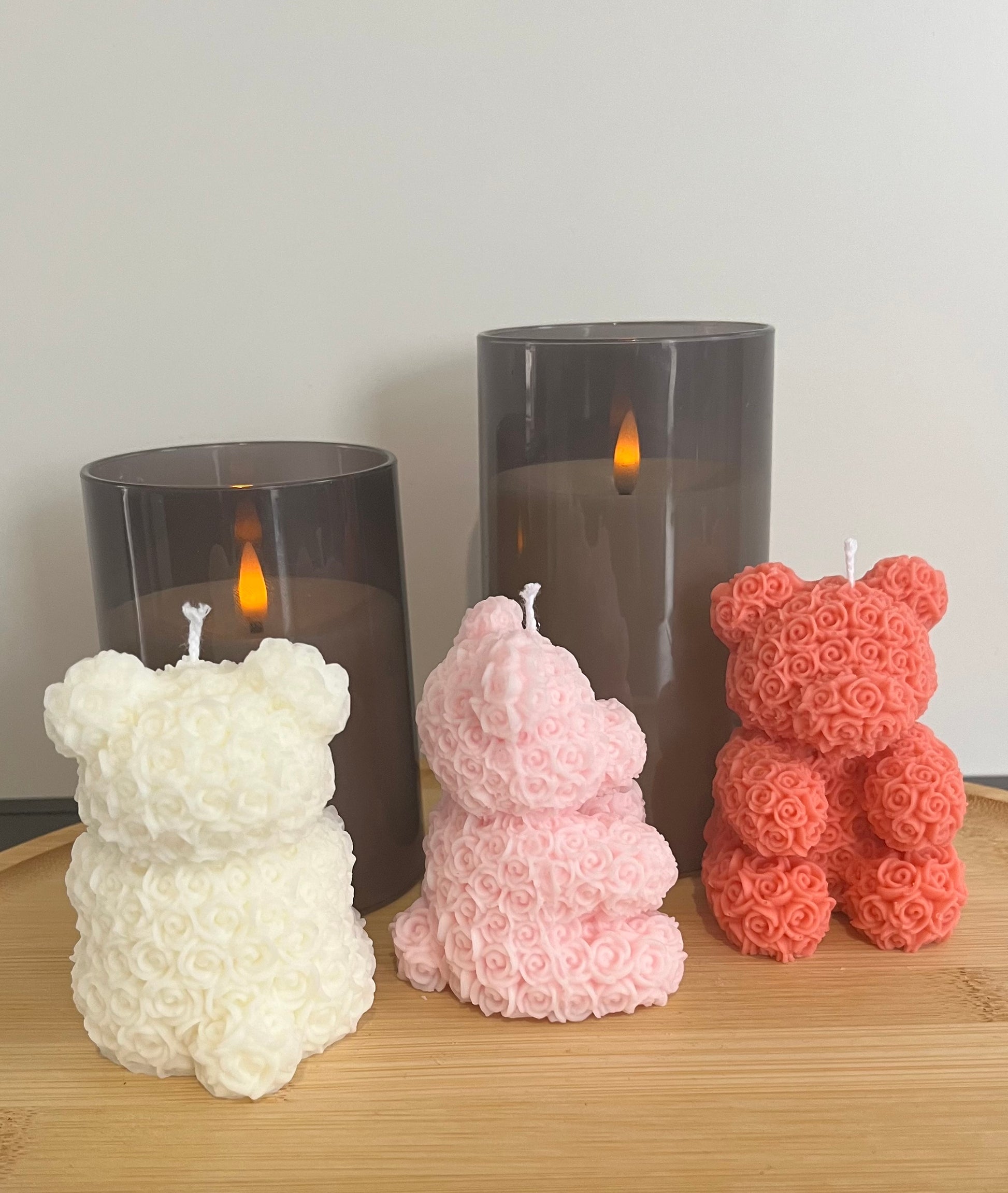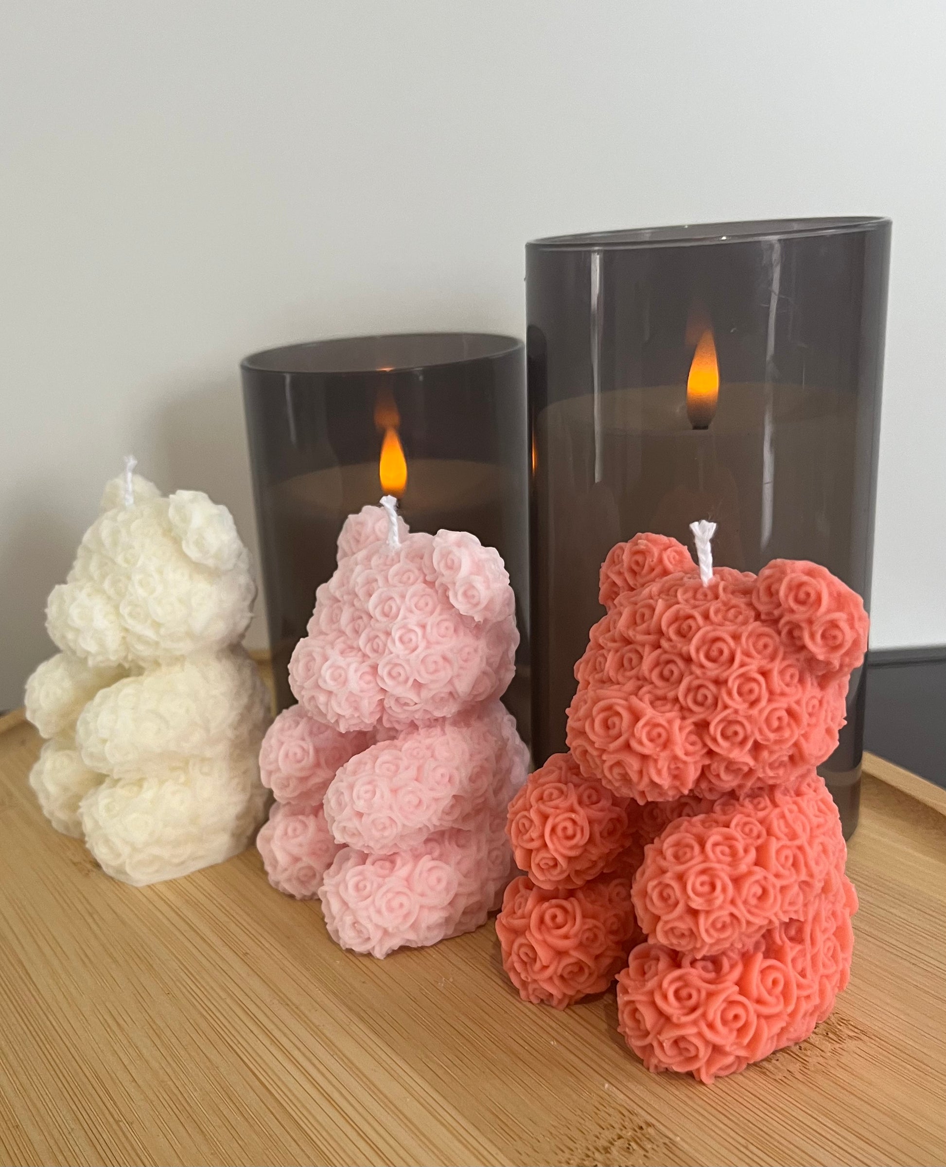Diese Kerze ist eine perfekte Verbindung aus Romantik und Kreativität. Die filigranen Rosen 🌹 verleihen dem Teddybären einen eleganten und verspielten Look.