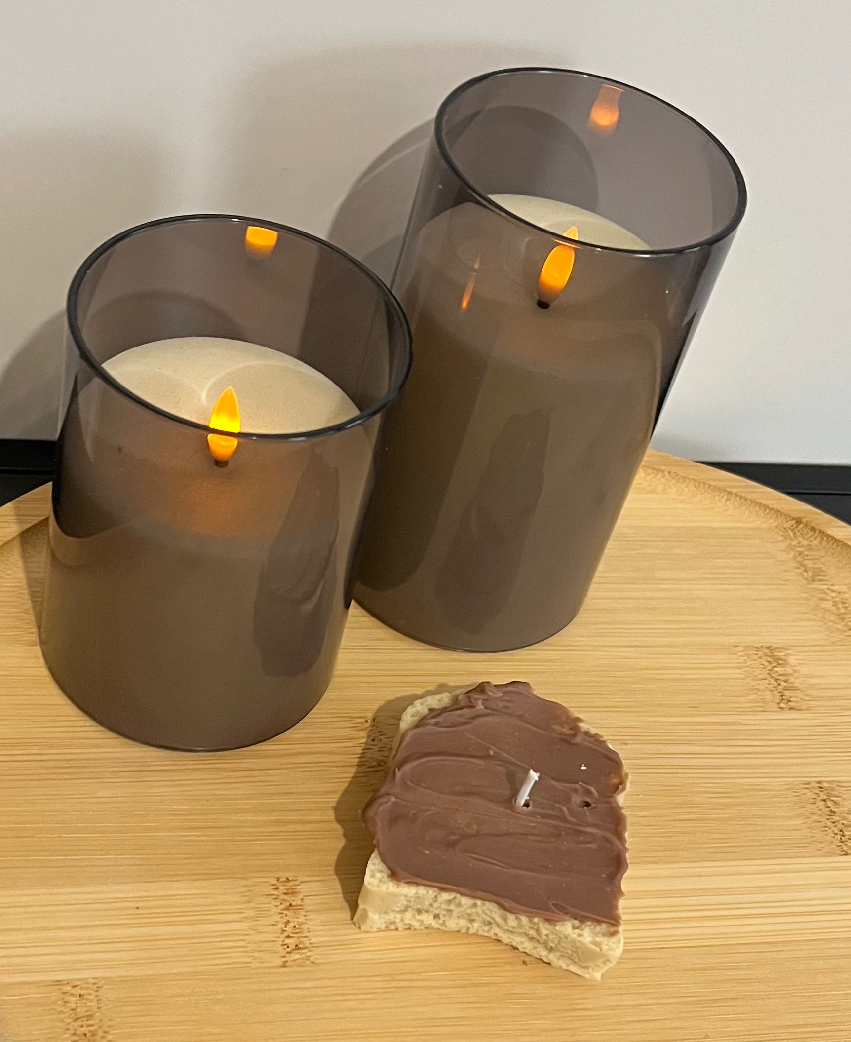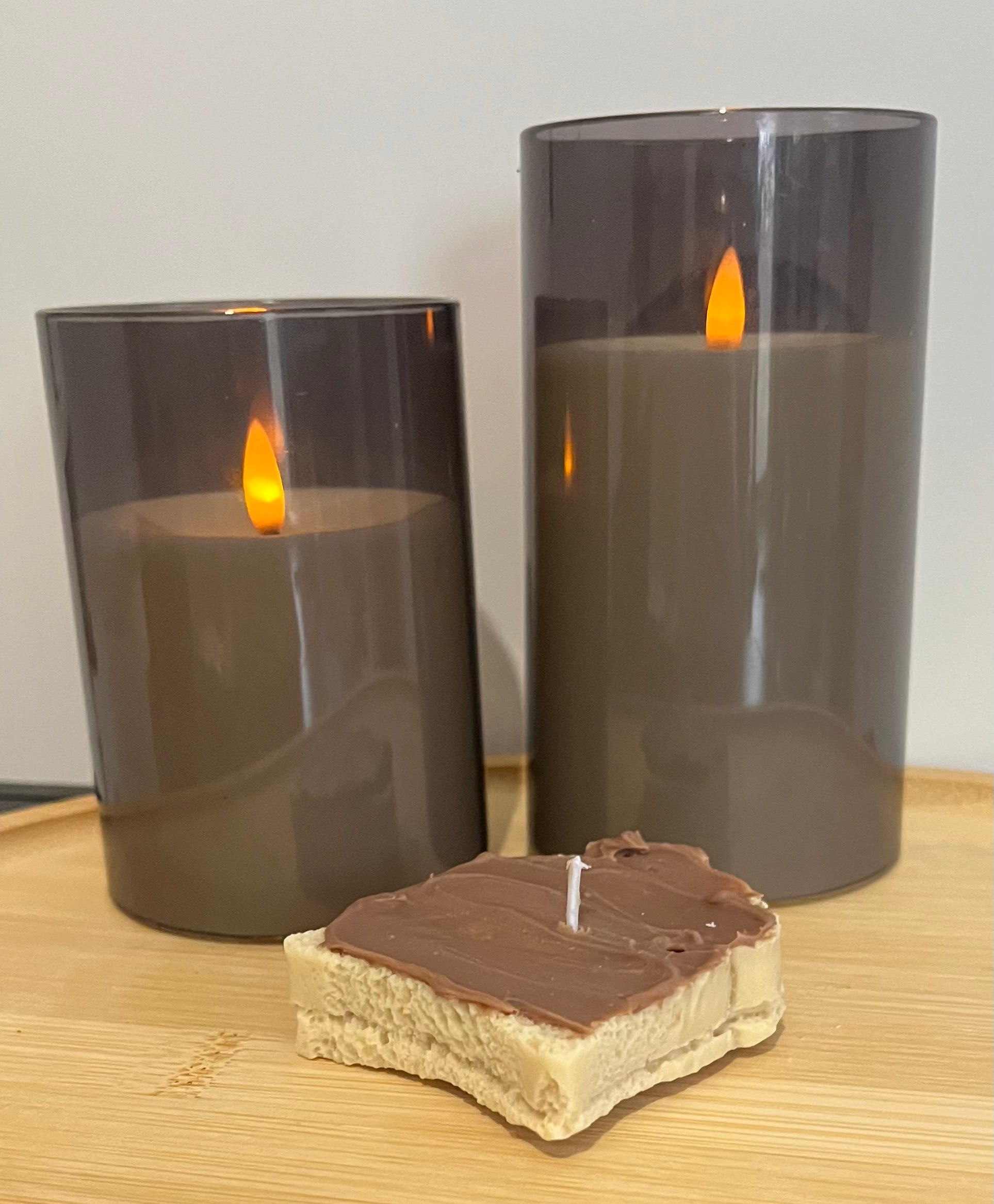 Diese Kerze in Form eines köstlichen Schoko Toasts 🍞 bringt nicht nur Wärme, sondern auch ein Hauch von Originalität in ihre Dekoration.