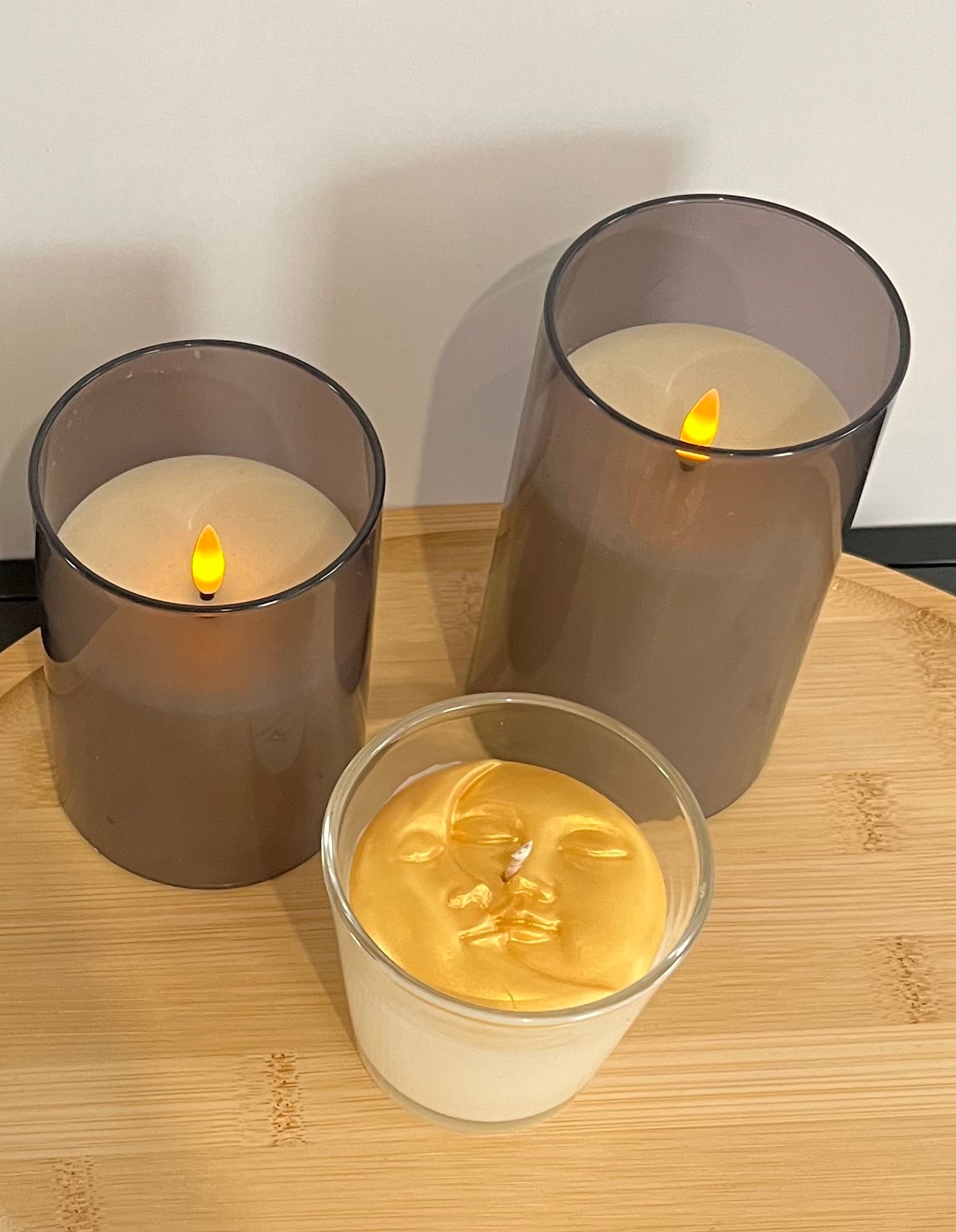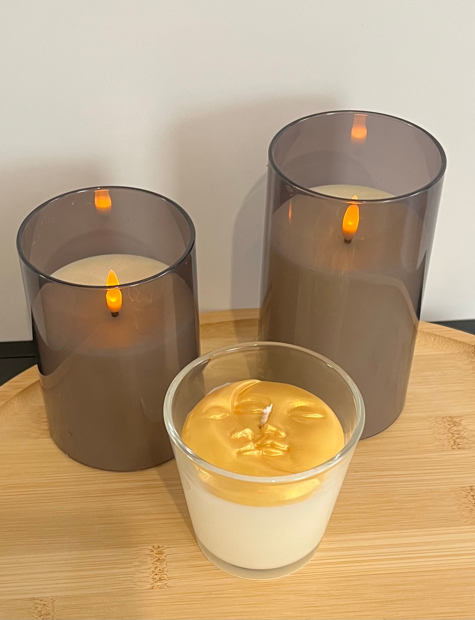 Diese außergewöhnliche Kerze vereint Duft, Design und Emotion. Die Oberfläche ziert ein kunstvoll geprägtes Gesichtsmotiv von Sonne 🌞 und Mond 🌛 in schimmerndem Gold, das bei jedem Blick neue Details offenbart.