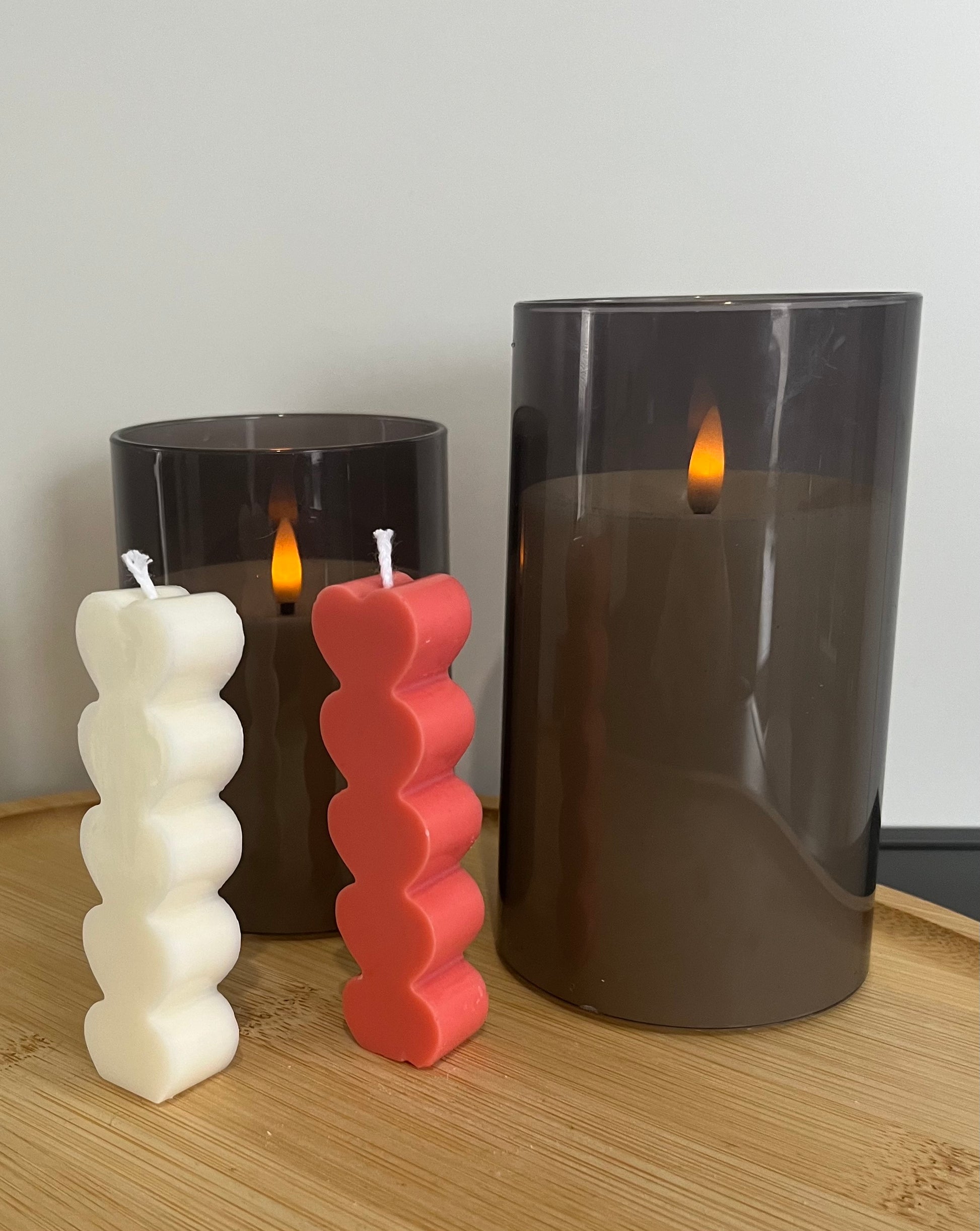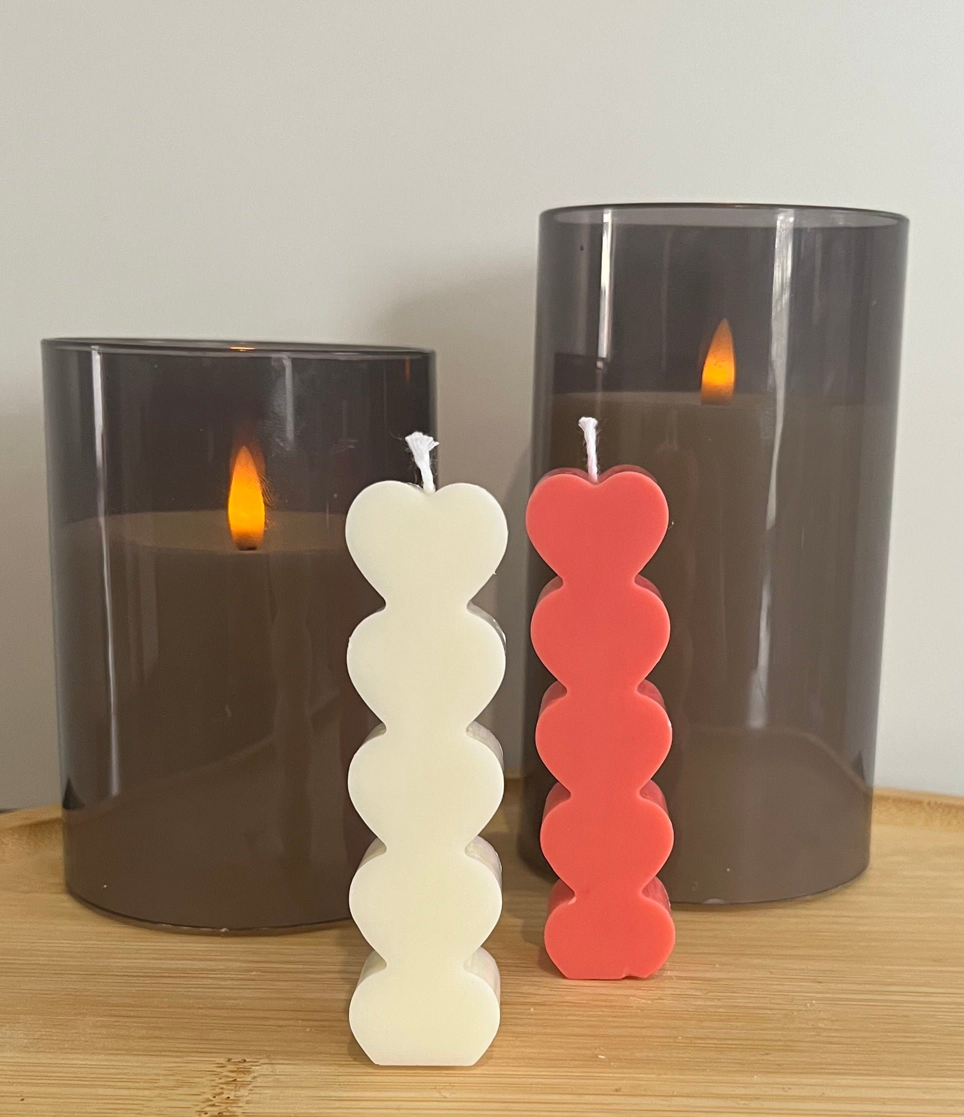 Verleihen Sie ihrem Raum eine romantische Note mit der Standkerze Herzturm. 🤍 Diese besondere Kerze überzeugt mit ihrem einzigartigen Design, bei dem mehrere herzen übereinander gestapelt wirken.💗