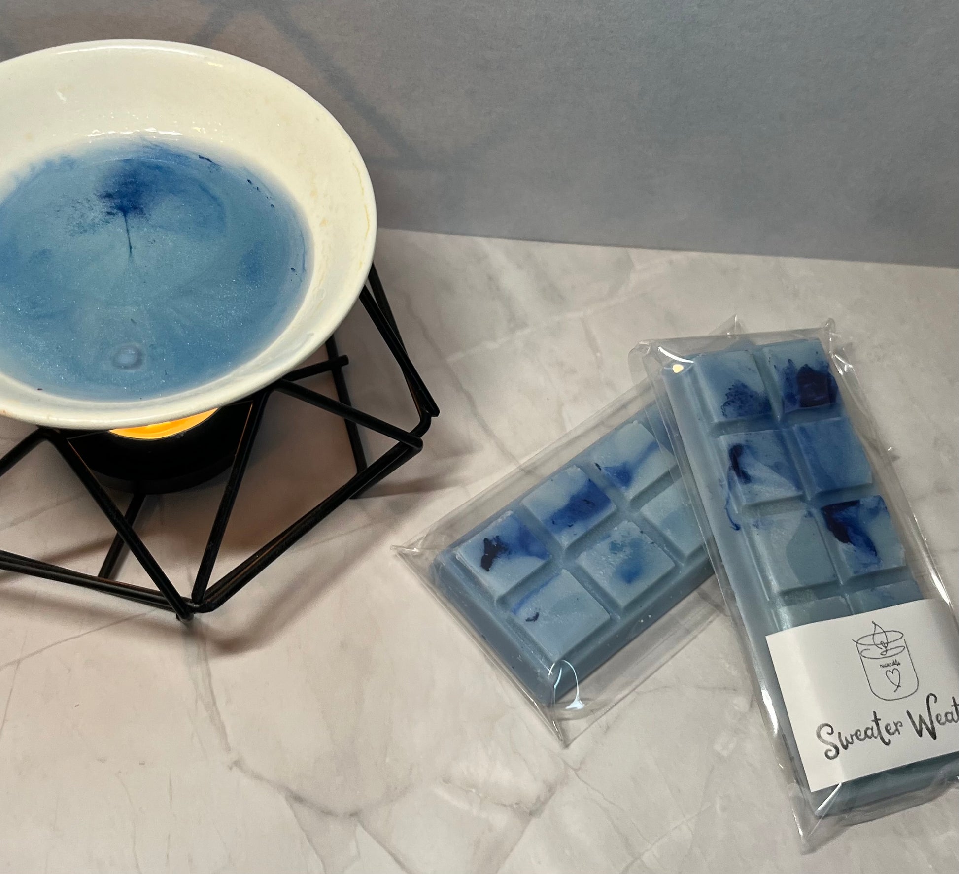 Unsere handgefertigten Waxmelts in sanften Blautönen bringen dir die frische Klarheit eines kühlen Herbstmorgens nach Hause. Der Duft Sweater Weather vereint belebende Frische mit einer warmen, gemütlichen Note – wie ein Spaziergang an der Herbstluft, eingehüllt in deinen liebsten Pullover. Perfekt, um eine wohltuende, beruhigende Atmosphäre in deinem Zuhause zu schaffen. 🩵